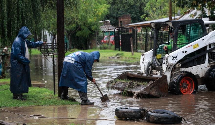 Las cuadrillas municipales intensificaron los trabajos sobre la localidad de Manuel Alberti, ante las fuertes lluvias y el alerta naranja.